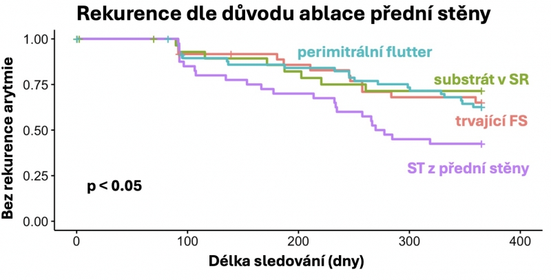 Závěr: Ablace přední stěny LS je bezpečná a dosahuje uspokojivých střednědobých výsledků. Nejčastějším typem rekurence je ST. Nedostatečné opoždění aktivace ouška LS a lokalizovaná ST z přední stěny LS jako důvod ablace jsou prediktory rekurence FS/ST. U většiny reablovaných pacientů je patrná rekondukce na přední stěně LS.
