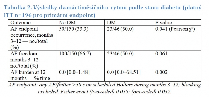 DIABETES, ZÁTĚŽ FIBRILACÍ SÍNÍ A 12MĚSÍČNÍ VÝSLEDKY RYTMU U OBÉZNÍCH PACIENTŮ: PODSTUDIE STUDIE PRAGUE-25.