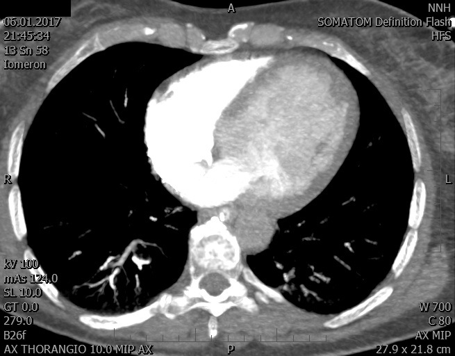 Třiapadesátiletá pacientka sledovaná pro dilatační kardiomyopatii, s diagnózou infarktu myokardu bez elevací úseku ST s normálním koronarogramem v roce 2016, s již implantovaným kardioverterem-defibrilátorem (ICD) v rámci primární prevence náhlé srdeční smrti byla přijata v lednu 2017 na koronární jednotku pro mimonemocniční oběhovou zástavu, které předcházela bolest na hrudi a dušnost. Iniciálním rytmem byla bezpulsová elektrická aktivita (PEA). Pacientce byla poskytnuta standardní resuscitační a poresuscitační péče včetně řízené hypotermie (33 °C, 24hodinový protokol) a terapie přetrvávajícího těžkého šoku. V paměti ICD nebyl záznam maligní arytmie. Akutní koronarografie prokázala normální nález na věnčitých tepnách s výjimkou suspekce na lehký spasmus na pravé koronární tepně (video 1).